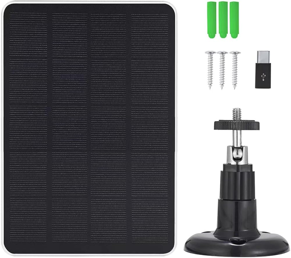 When using the camera for the first time, fully charge the product before connecting the solar panel for better results. Package includes -1 x solar panel, 1 x 360-degree mounting bracket, 10 ft outdoor charging cable, 3 x screws and wall anchor, 1 x user manual.