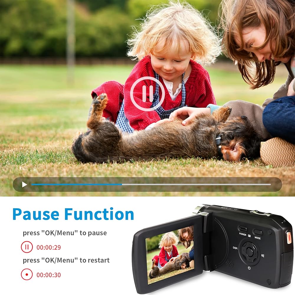 هيجومن كاميرا الفيديو مفيدة لالتقاط الصور الجميلة ومشاركتها على يوتيوب الخاص بك، استمتع بلحظاتك الجميلة! يرجى ملاحظة: 1. قم بتنسيق بطاقة الذاكرة من خلال هذه الكاميرا للاستخدام لأول مرة. 2. يمكن تركيبه مع بطاقة SD خارجية تصل إلى 256 جيجابايت، يوصى بشدة باستخدام الفئة 10. 3. بطاقة الذاكرة غير متضمنة.