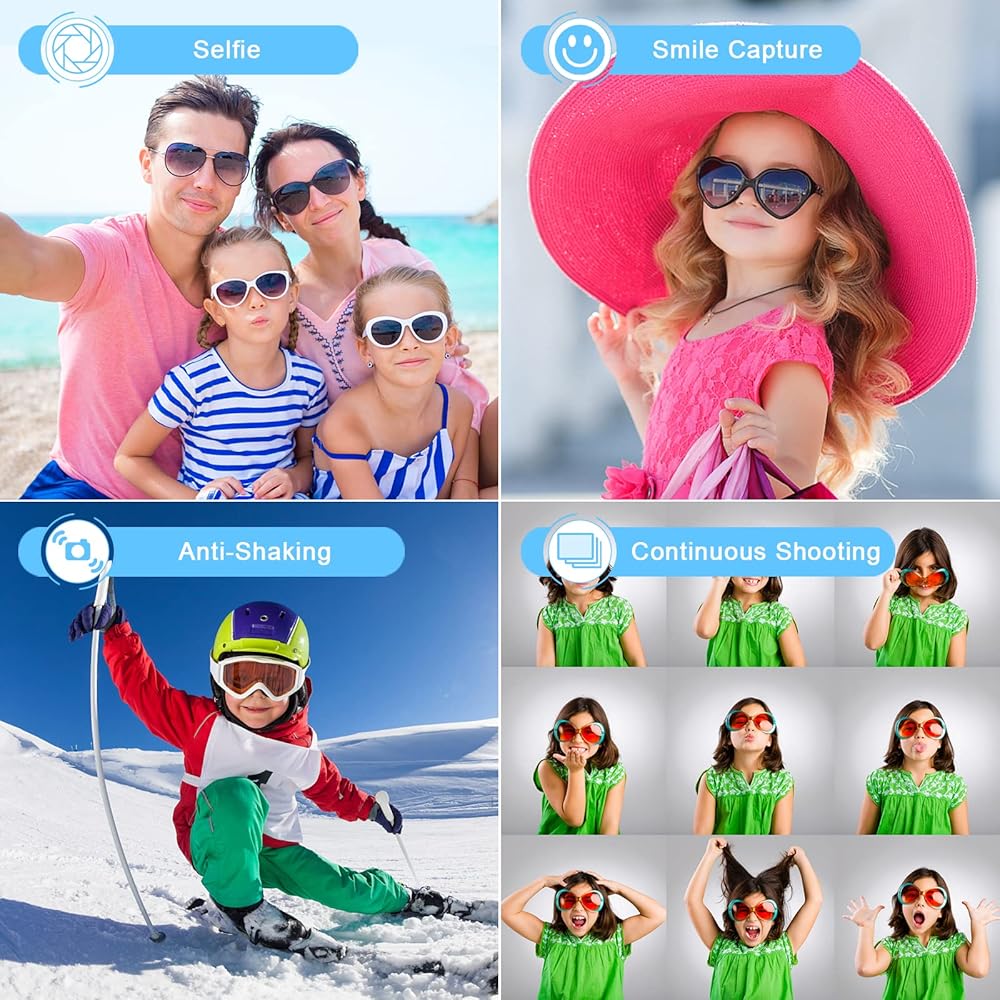 【كاميرا فيديو متعددة الوظائف】كاميرا الفيديو الرقمية خفيفة الوزن وسهلة الاستخدام مصنوعة من مواد عالية الجودة، ومجهزة بحزام معصم قابل للتعديل. تدعم الفيديو على فترات، كشف الحركة، التقاط الابتسامة، المؤقت الذاتي، مضاد للاهتزاز، الفاصل الزمني، كاميرا الويب، ضبط التاريخ والوقت وما إلى ذلك. تعد كاميرات الفيديو هذه هدية مثالية للأطفال والمراهقين والمبتدئين والبالغين لتسجيل لحظاتهم الجميلة. رائعة للسفر والعطلات والتخييم والحفلات العائلية.