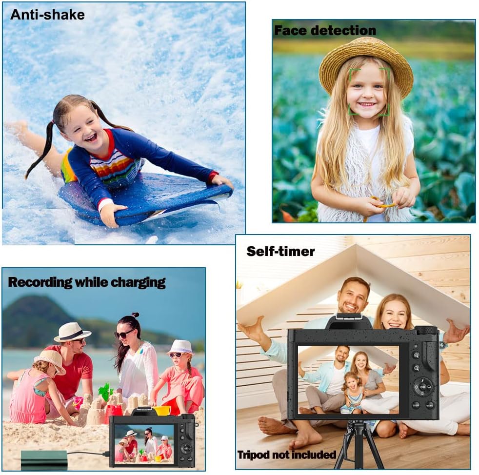 【كاميرا رقمية FHD 4K و48 ميجابكسل مع شاشة IPS مقاس 3.5 بوصة】 تعتمد هذه الكاميرا الرقمية تنسيق فيديو 4K 30FPS Full HD 4K لتسجيل مقاطع فيديو سائلة وتتيح لك الاستمتاع بتأثير فيديو سينمائي عالي الدقة. خاصة مستشعر CMOS المتطور بدقة 48 ميجابكسل يعرض صورك صور ثابتة رائعة ذات جودة عالية، شاشة 3.5 بوصة تسمح بعرض عالي الوضوح، وفي الوقت نفسه تدعم كاميرا تسجيل الفيديو التكبير الرقمي 16X (وليس التركيز التلقائي).