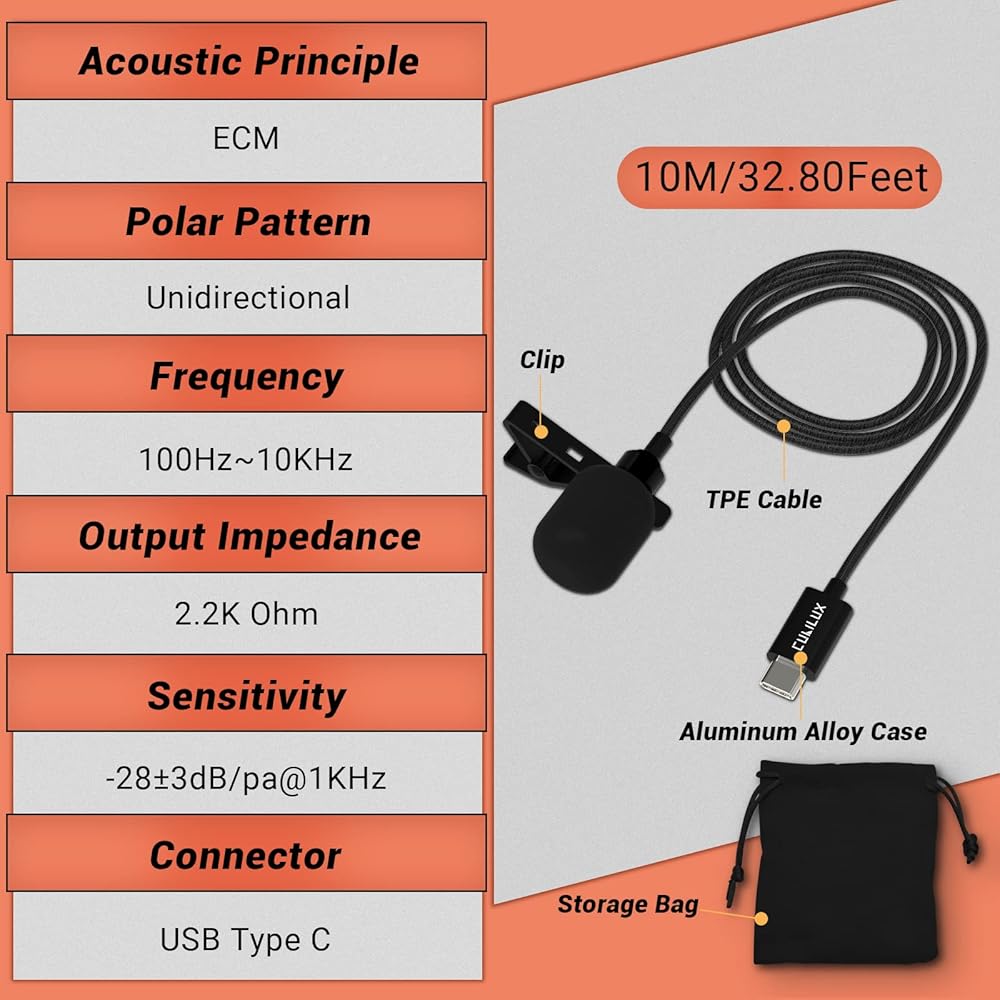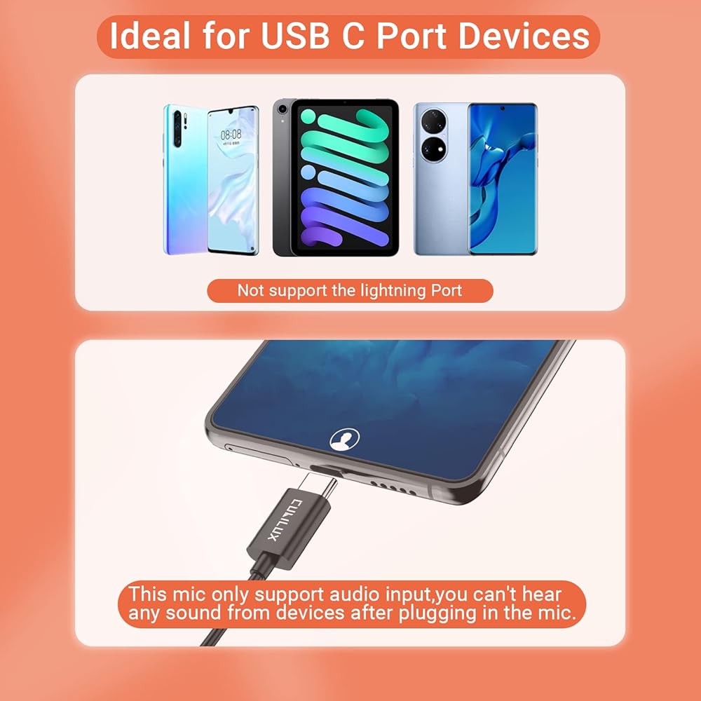 ميكروفون كيوبيلوكس USB C خارجي صغير قابل للتوصيل والتشغيل على معظم أنواع C (متوافق مع ثاندربولت 4/3)