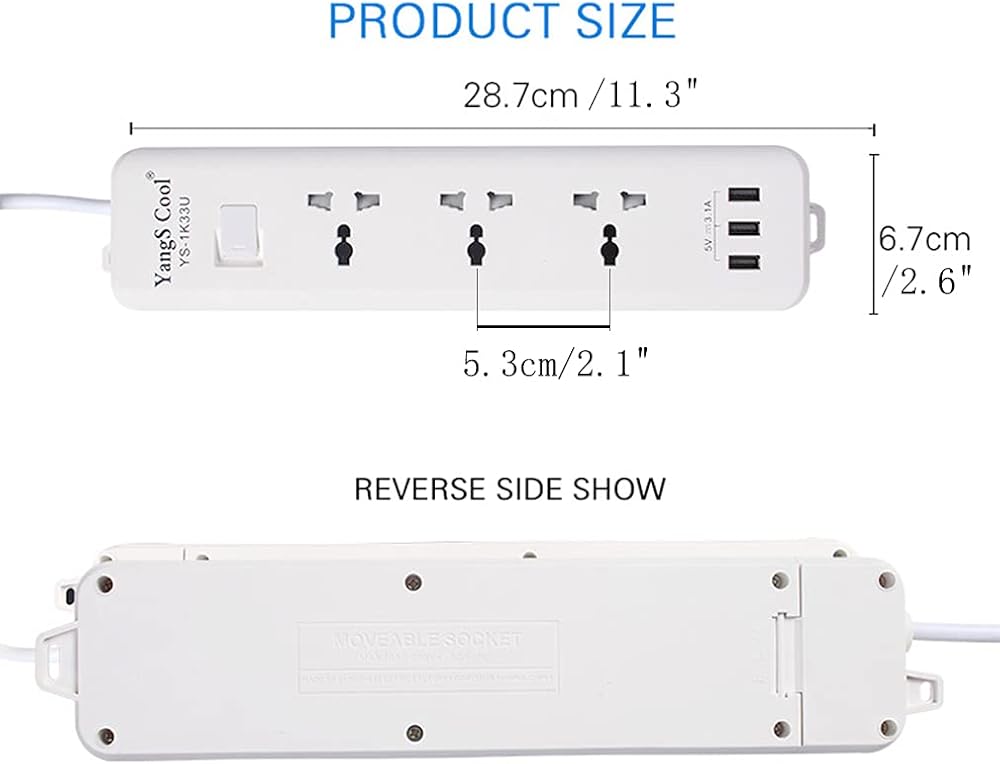 يمكن لسلك التمديد مع USB أن يغلق التيار الكهربائي تلقائيًا عند زيادة تحميل الطاقة ويحمي الأجهزة على الفور. مخرج USB بحد أقصى 5 فولت، 3.1 أمبير، 3 منافذ جميعها مجهزة بهواتفك والأجهزة الأخرى التي تعمل بالطاقة USB