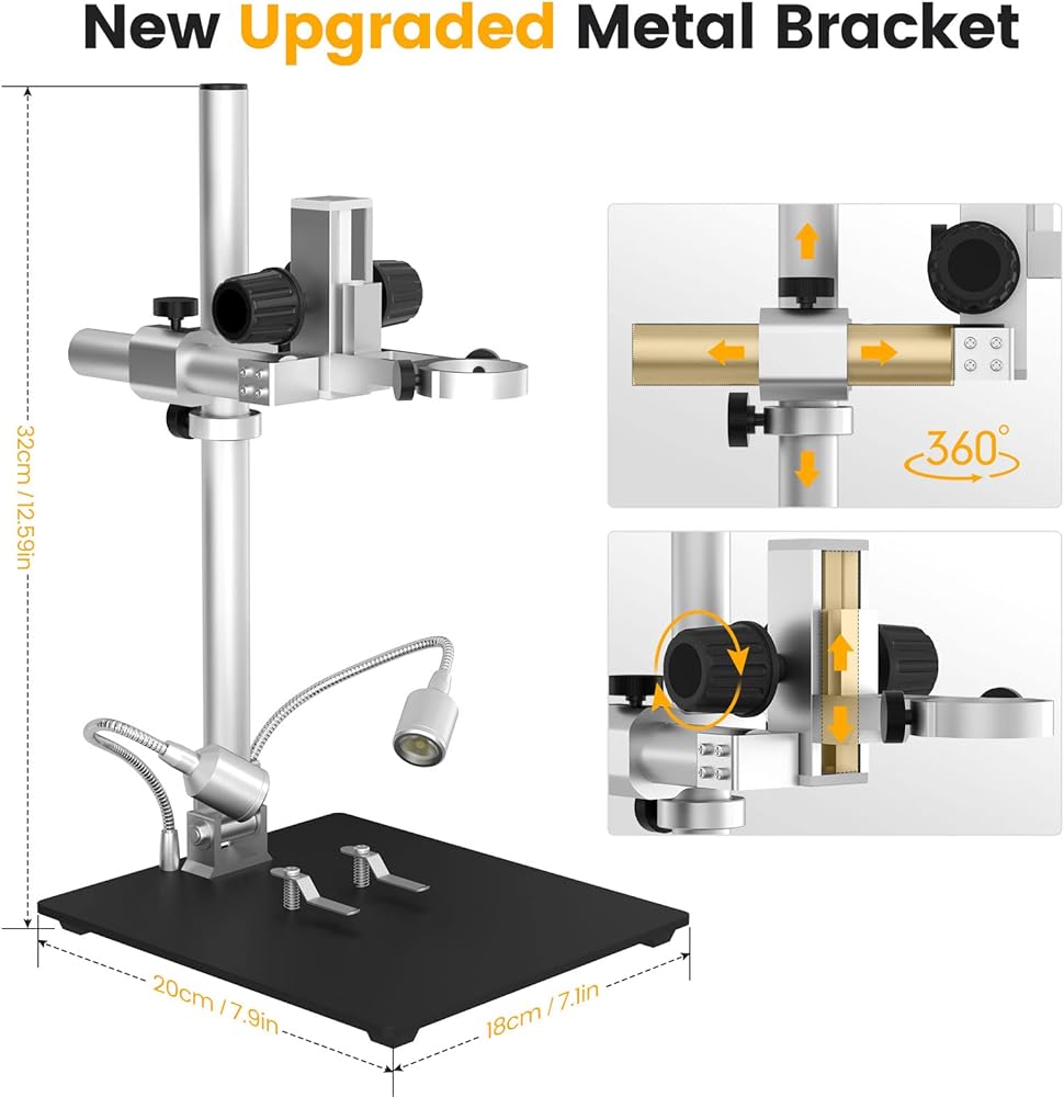 【مجهر لحام مع دعامة معدنية مطورة】تم ترقية مجهر اندوستار AD407-Pro مع دعامة معدنية مقاس 13 انش، يمكن تعديل الدعامة الرئيسية لأعلى ولأسفل، للأمام والخلف، ويمكن تدويرها 360 درجة أفقيًا. يمكن تعديل الدعامة الثانية لأعلى ولأسفل للحصول على الدقة. يوفر هذا التصميم الفريد مسافة عمل طويلة للغاية عند لحام ألواح الدوائر المطبوعة المطبوعة.