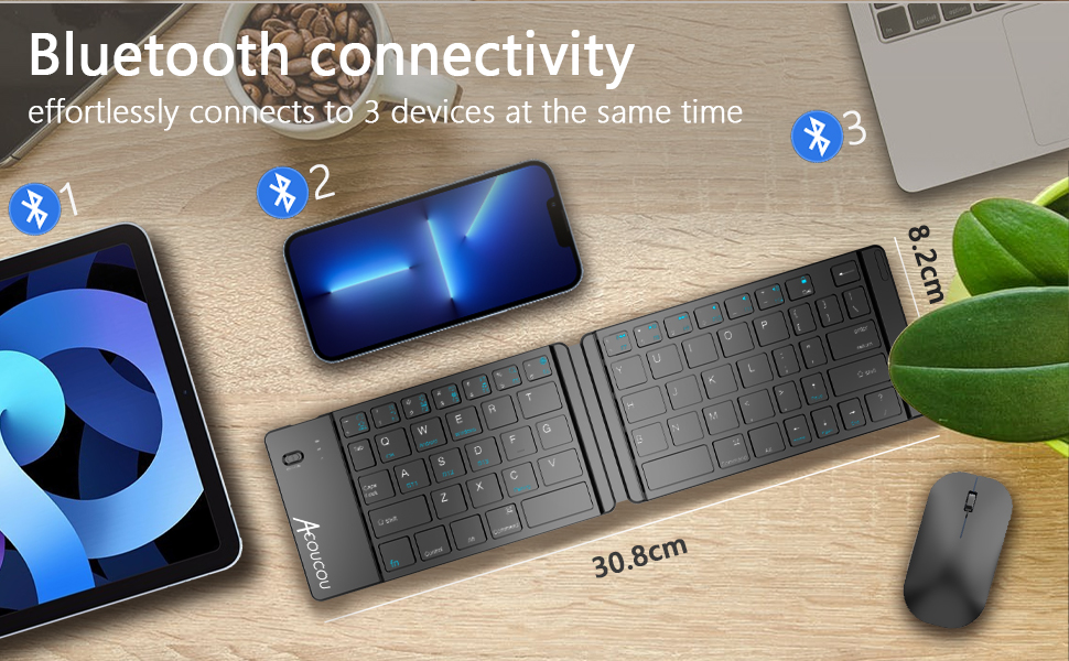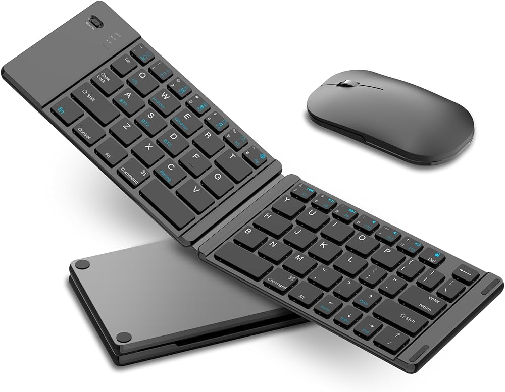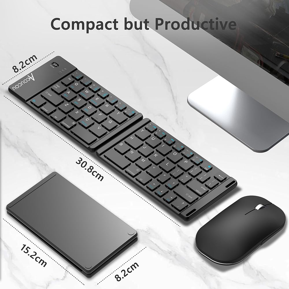 مجموعة لوحة مفاتيح وماوس قابلة للطي من Acoucou، مجموعة لوحة مفاتيح وماوس لاسلكية، لوحة مفاتيح محمولة للسفر للكمبيوتر اللوحي والهواتف الذكية، متوافقة مع نظام Mac/iOS Windows Android System-3 قنوات بلوتوث