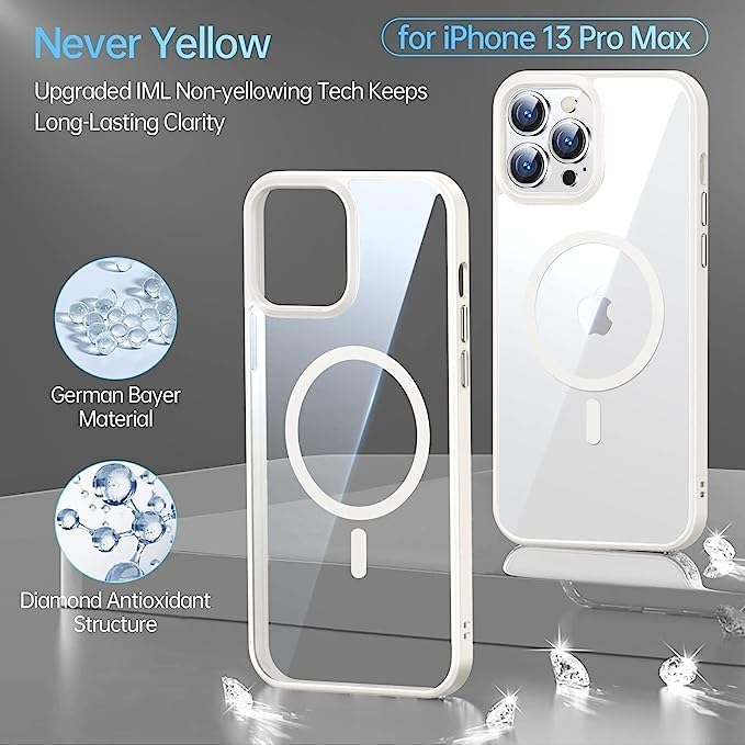 تتوافق هذه الحافظة مع أي أجهزة وشواحن وملحقات Mag Safe. تعتمد هذه الحافظة الواضحة على مادة مضادة للاصفرار تم تطويرها حديثًا. يحتوي السطح على طبقة إخلاء زيت معزولة بشكل احترافي، والتي يمكن أن تمنع بشكل فعال 99.98% من بقايا الشحوم وسهلة التنظيف للغاية.