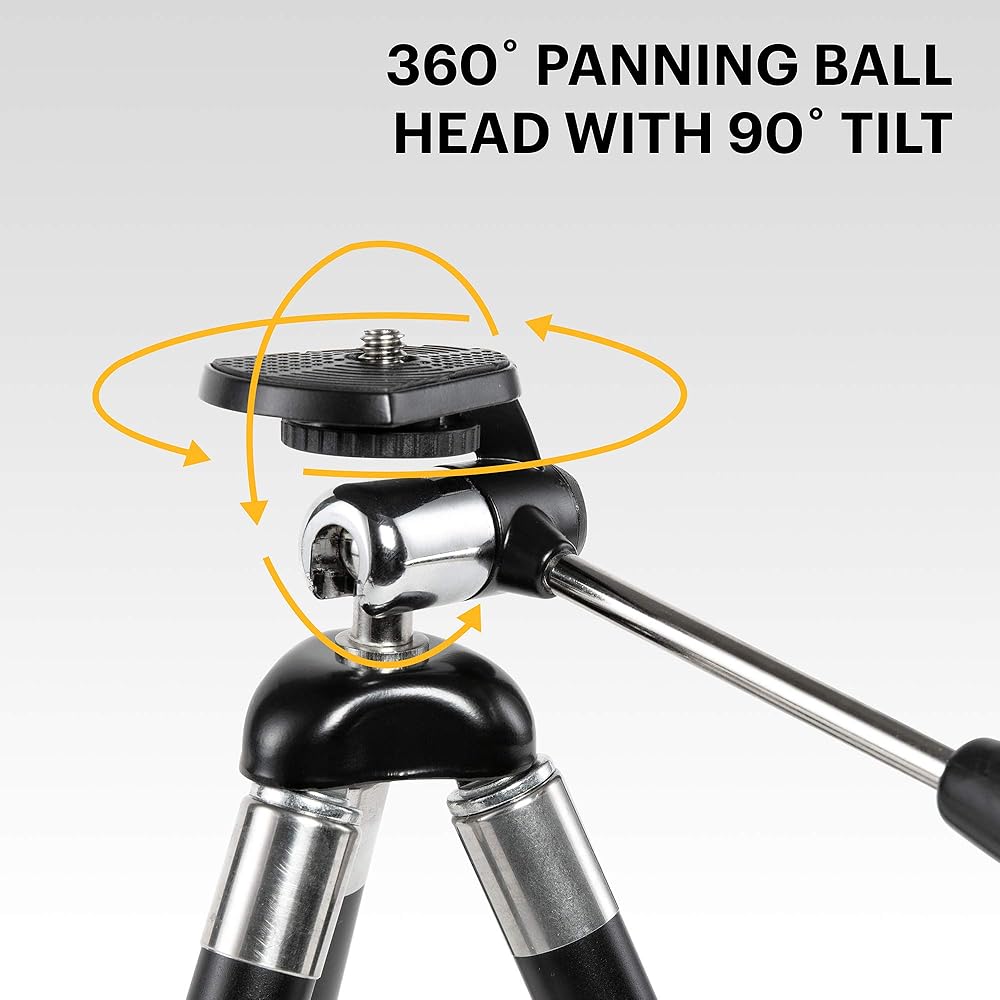 360° SWIVELING BALL HEAD | Smooth-Moving Platform Supports Tilting & Panning at Various Angles On Horizontal & Vertical Planes | Enjoy Full Range of Movement—Perfect for Changing Direction to Hone Compositions | Includes ¼” Mounting Screw & Smartphone Adapter | 1.1 Lb. Maximum Load Capacity
