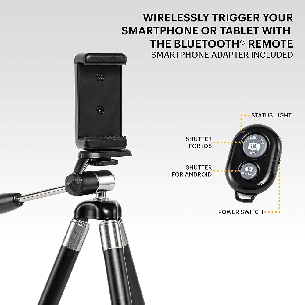 TRIPOD WITH SMARTPHONE REMOTE | 42” Adjustable 8-Section Tripod System Provides Ultimate Flexibility for Shooting Landscapes, Portraits, Selfies, Groups Shots & More | Handheld Bluetooth Remote Allows You to Capture Images From a Distance—While Eliminating Shutter-shock & Enhancing Image Sharpness