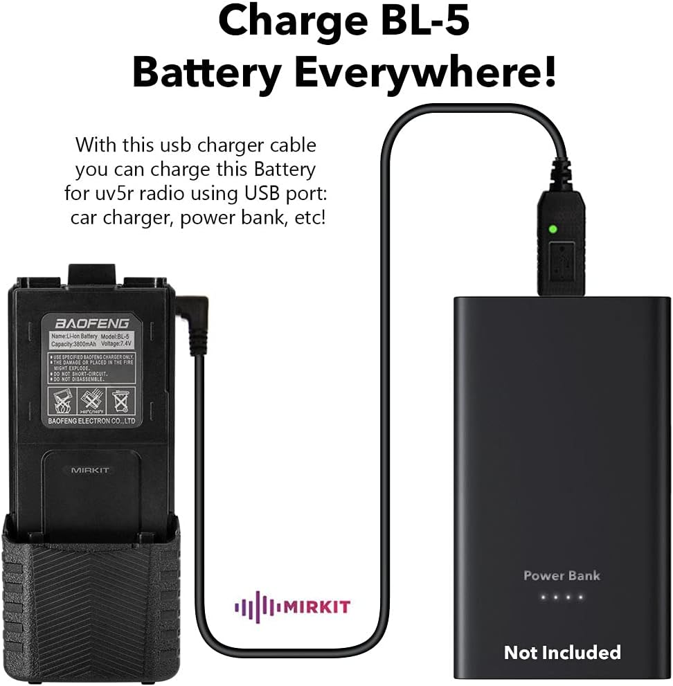 مجموعة ملحقات MIRKIT Baofeng: بطارية Baofeng BL-5L 3800mah مع كابل شحن USB Baofeng متوافق مع راديو Baofeng UV- 5R MK2 MK3 MK4 MK5 BF-F8HP UV-5RX3 RD-5R UV-5RTP UV-5X3