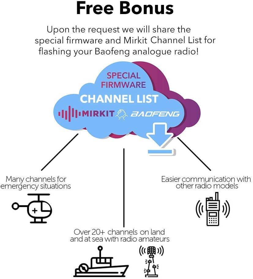 نحن، كشركة Mirkit، الموزعون الرسميون لملحقات أجهزة راديو Baofeng ham ونقترح ضمانًا أمريكيًا بنسبة 100% من راديو MIRKIT لجميع عملائنا!