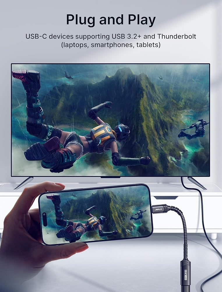 • 【تجربة بصرية 8K UHD 】: يدعم محول JSAUX USB C إلى HDMI دقة تصل إلى 8K@60 هرتز أو 4K@144 هرتز، وفك تشفير الصوت 192 كيلو هرتز/24 بت حتى تتمكن بسهولة من عكس شاشتك أو تمديدها دون فقدان الوضوح. (*ملاحظة: للحصول على 8K 60 هرتز/4K 120 هرتز، يرجى تأكيد منفذ USB C الخاص بك على المضيف، وكابل HDMI والشاشة الخارجية يدعمان دقة 8K)