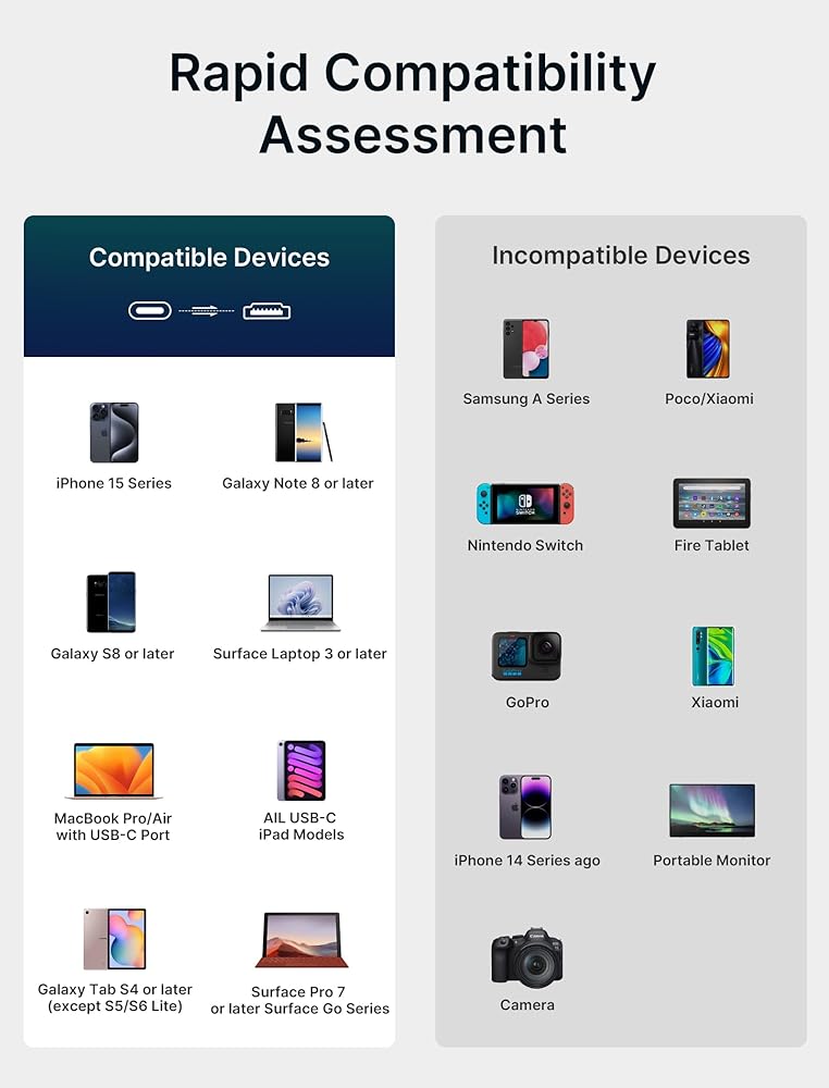 • توافق عالمي: يدعم محول USB من النوع C إلى HDMI 8K USB 3.2 أو أعلى وأجهزة واجهة Thunderbolt 3/4 USB-C (أجهزة الكمبيوتر المحمولة والهواتف المحمولة والأجهزة اللوحية). يرجى تأكيد معلمات المنفذ قبل الشراء!