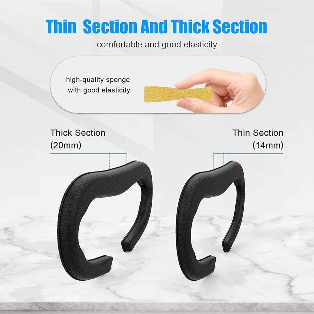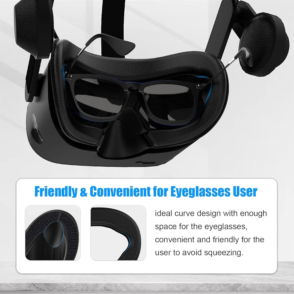 سهل التركيب والارتداء -- فقط قم بتوصيل الغطاء الإسفنجي الجلدي على واجهة الوجه المخصصة قبل إدخاله في سماعة الرأس. يأتي مع قطعتين من غطاء إسفنجي بديل من جلد البولي يوريثين (14 ملم و20 ملم)، والذي يمكن أن يناسب أشكال وجوه المزيد من الأشخاص ومجال رؤيتهم. مع العرض الكافي، يمكن للاعبين الذين يرتدون النظارات ارتداء سماعات ريفيرب جي 2 بسهولة، ولن يتم الضغط على إطار النظارات