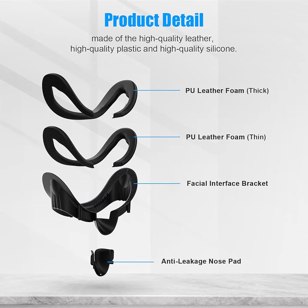 ما يمكنك الحصول عليه -- 1 × دعامة واجهة الوجه، 2 × غطاء إسفنجي جلدي، 1 × وسادة أنف مضادة للتسرب، 1 × دليل التركيب. مع سياسة ضمان المنتج لمدة 12 شهرًا وخدمة عملاء ودية على مدار الساعة طوال أيام الأسبوع. يرجى ملاحظة: إذا كانت سماعة الرأس الخاصة بك هي إصدار HP Reverb G2 2، فيرجى عدم استخدامها مع دعامة واجهة القناع الأصلية عند استخدامها. إنها غير متطابقة قليلاً. تحتاج إلى إزالة دعامة واجهة القناع الأصلية للحصول على تطابق مثالي.