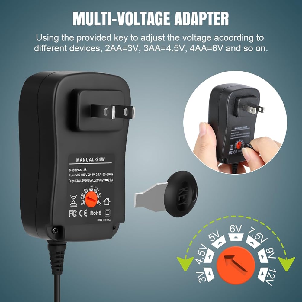 سهل الاستخدام: ضع المحول بشكل صحيح في علبة البطارية وفقًا للأقطاب الإيجابية والسلبية. متوافق مع معظم تطبيقات التيار المنخفض والمتوسط <2 أمبير. ملحوظة: يرجى التأكد من أن جهد مصدر الطاقة متوافق مع جهازك
