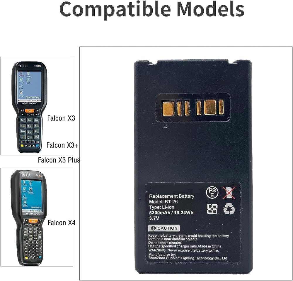 بطارية بديلة لـ Datalogic Falcon X3 Falcon X3 Plus Falcon X3+ Falcon X4، تناسب الجزء رقم 94ACC1386 BT-26 5200mA