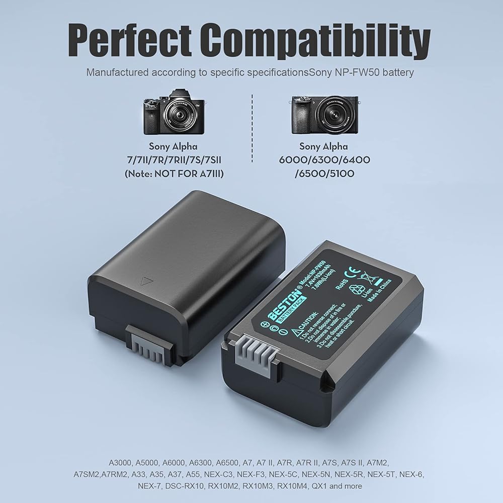 معلومات السلع: بطارية بديلة 7.4 فولت 1030 مللي أمبير لكاميرا سوني، كل بطارية توفر ما يصل إلى 500 دورة، شاحن بطارية USB 5 فولت/2 أمبير