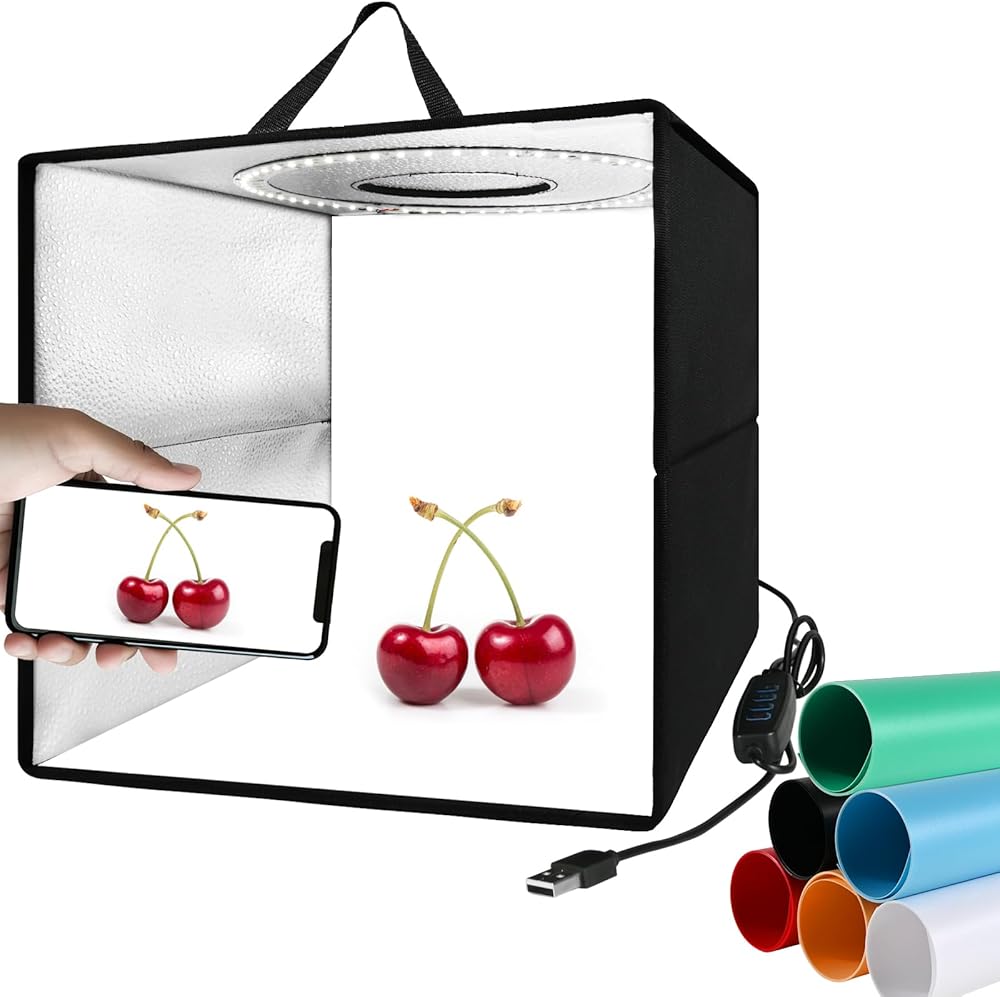 صندوق إضاءة محمول للتصوير الفوتوغرافي، صندوق إضاءة استوديو الصور، مجموعة خيمة تصوير احترافية مقاس 12 × 12 بوصة مع 120 مصباح LED + 6 خلفيات ملونة + قطعة قماش ناشرة للضوء - صندوق صور قابل للتعتيم لتصوير المنتج