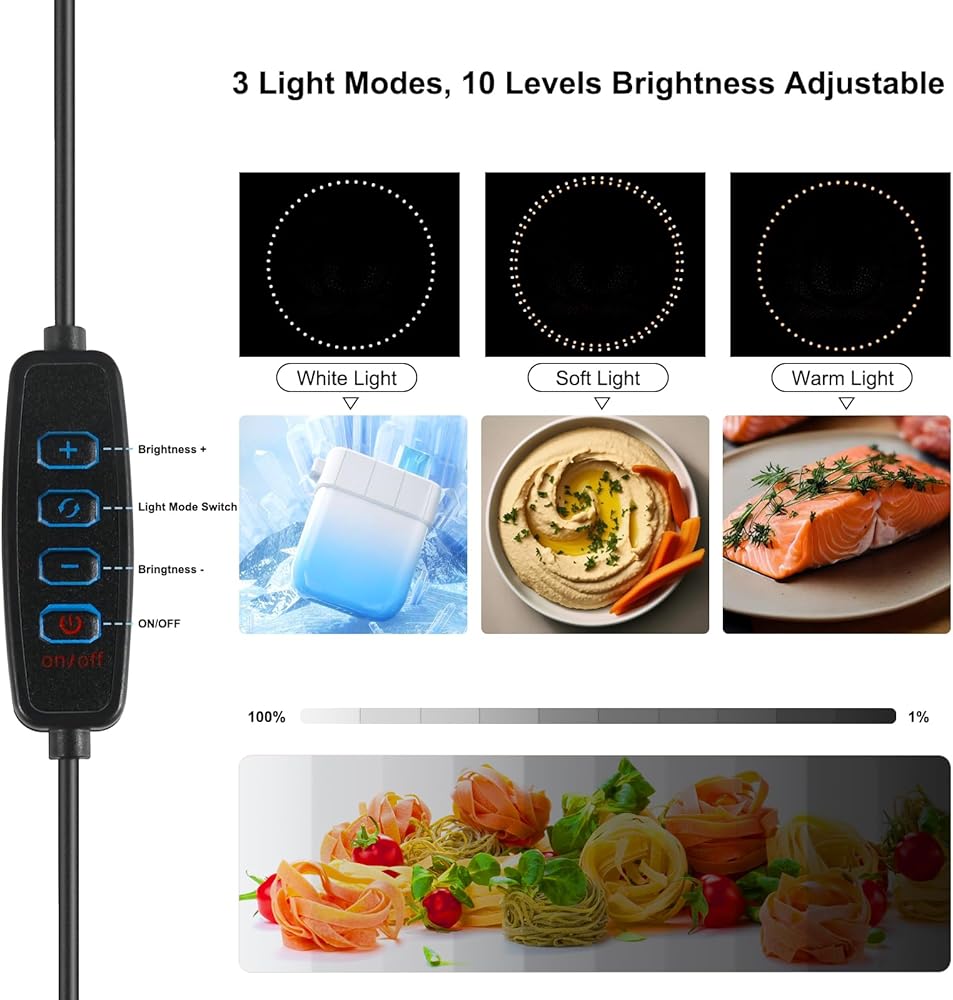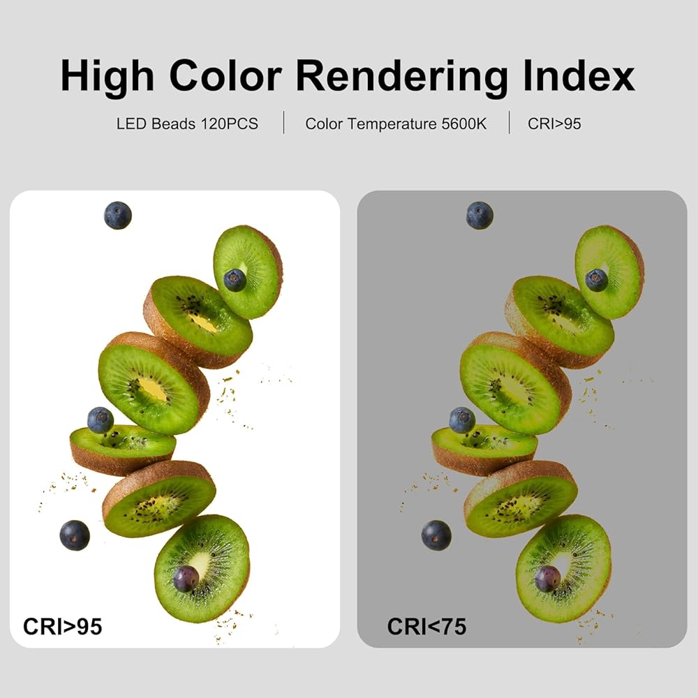 سطوع قابل للتعديل: يتميز صندوق الضوء بـ 120 قطعة من خرزات إضاءة LED عالية الجودة، نطاق التعتيم هو 1%-100%، مع دعم تبديل درجة حرارة اللون (الضوء الأبيض / الضوء الناعم / الضوء الدافئ 2800K-5600K)، يمكن ضبط الإضاءة بما يرضيك. يتميز التصوير الفوتوغرافي بصندوق الضوء بمؤشر تجسيد الألوان العالي (CRI) الذي يبلغ 95+، بدون وميض، مما يجعل التصوير غير محدود، وسهل التقاط صور عالية الجودة.