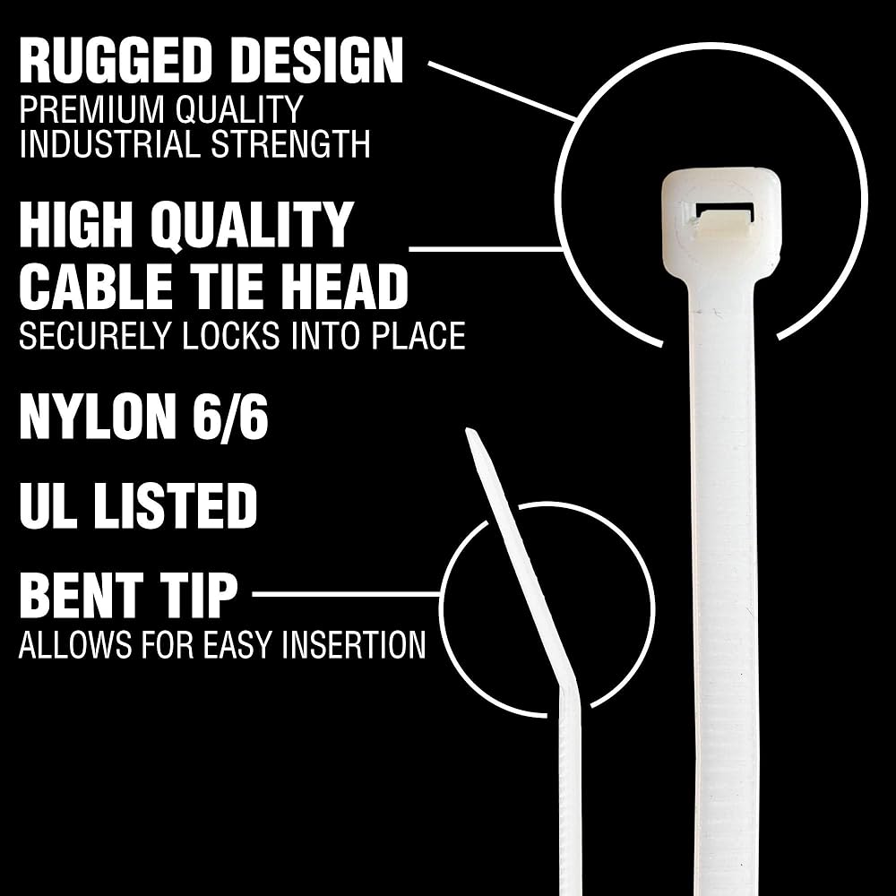 مصنوع من مواد نايلون 6/6 عالية الجودة ومدرجة في قائمة UL؛ مادة نايلون مرنة ذات قوة صناعية لأداء منتج يدوم طويلاً