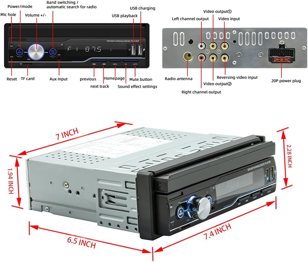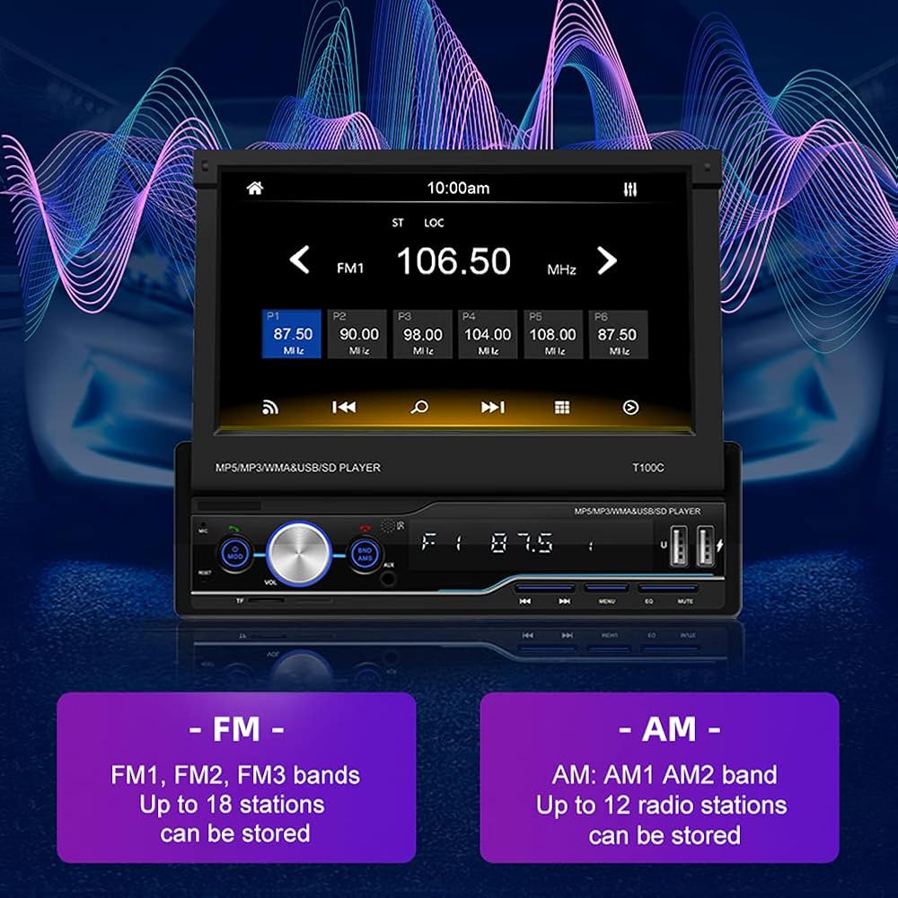 3. [راديو سيارة بشاشة تعمل باللمس]: بالمقارنة مع راديو دين العادي، يتيح لك الراديو المزود بشاشة قابلة للطي مقاس 7 انش الاستمتاع بوظائف أكثر من الراديو العادي. يمكنك إخراج الشاشة عند الحاجة إليها، وطيها إذا لم تكن بحاجة إلى مشاهدتها، ولكن الجهاز سيظل يعمل.