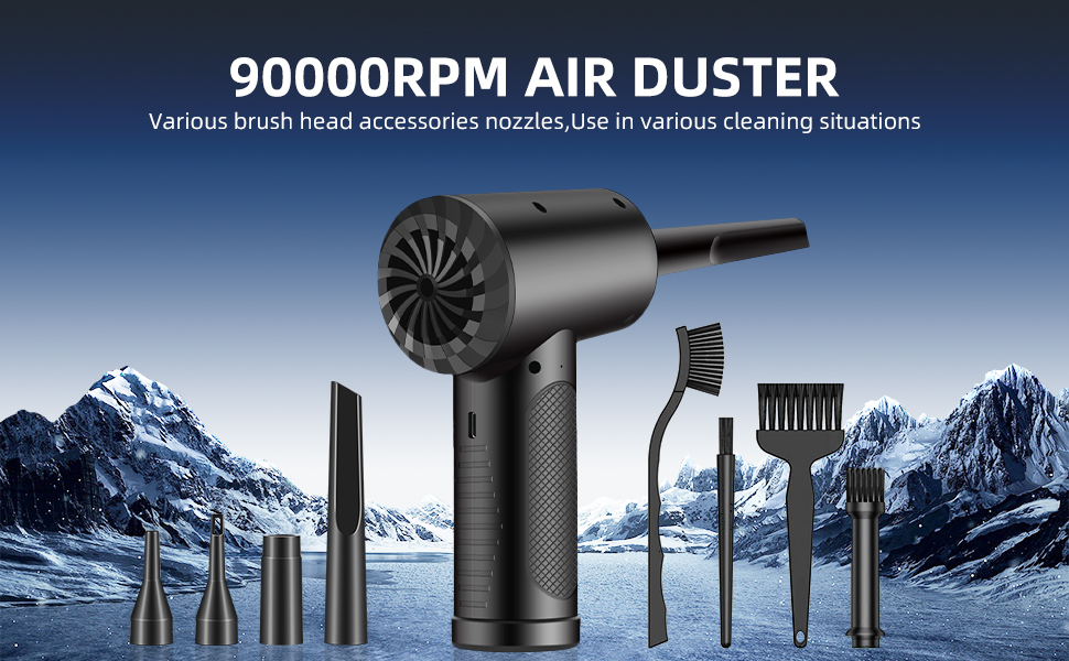 تأتي منفضة الهواء المضغوط مع 4 فوهات متعددة الاستخدامات يمكن أن تساعدك على تنظيف مكيفات الهواء والأرائك والألعاب والديكورات الداخلية للسيارة وأجهزة اللابتوب والكيبورد والمعدات الكهربائية وشعر الحيوانات الأليفة والفتحات التي يصعب الوصول إليها.