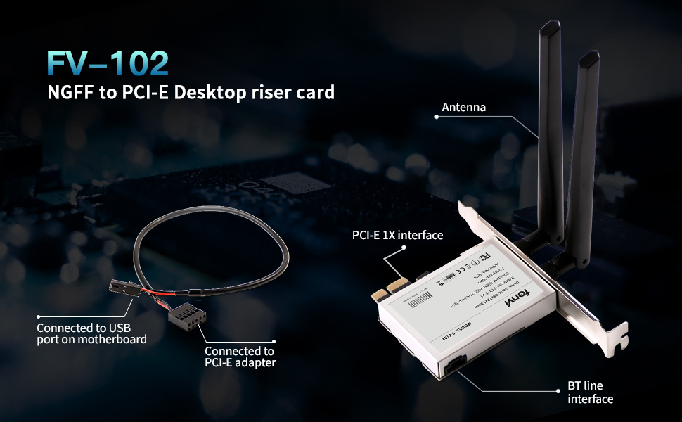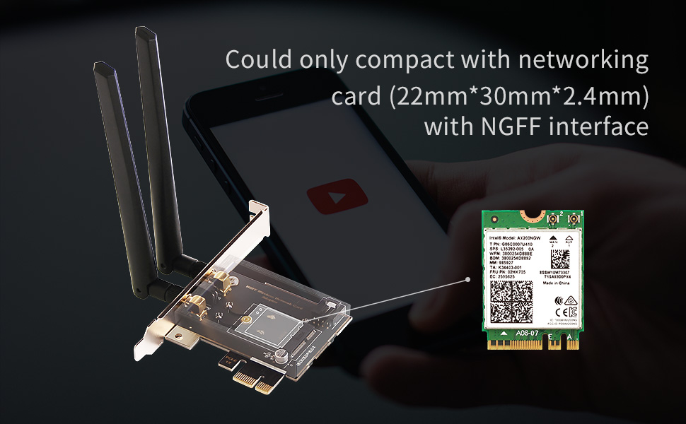 هذا محول لواجهة NGFF إلى PCI-E وليس بطاقة واي فاي لسطح المكتب. تم تصميم المحول السلبي لبطاقة PCI-E M.2 للتطبيق اللاسلكي على أجهزة الكمبيوتر المكتبية التي تحول بطاقة ميني كارد نصف الحجم (NGFF) إلى رأس USB 9 دبابيس أو قياسي