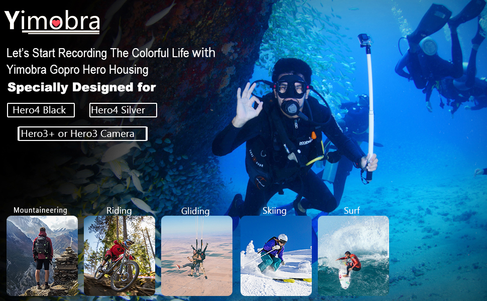جراب Yimobra مقاوم للماء لهاتف Gopro Hero 4 3+ واقي 131FT/40M التصوير الفوتوغرافي تحت الماء بصورة البطل الشفاف (مقدم مرة واحدة أكثر)