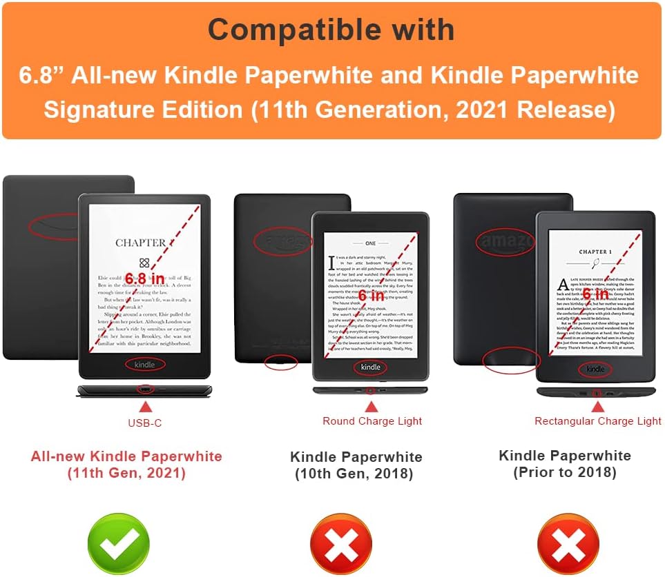 مصمم حصريًا للقارئ الإلكتروني Kindle Paperwhite وKindle Paperwhite Signature Edition مقاس 6.8 بوصات (الجيل الحادي عشر - إصدار 2021). لا يناسب أجهزة Kindle الأخرى من الجيل السابق.