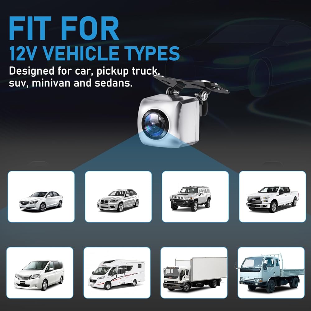 كاميرا احتياطية لشاحنة بيك اب سيارة 12 فولت، كاميرا خلفية للرؤية الخلفية لسيارات الدفع الرباعي مع رؤية ليلية بزاوية مثالية 149 درجة IP69K مقاومة للماء، هيكل معدني كامل، فضي