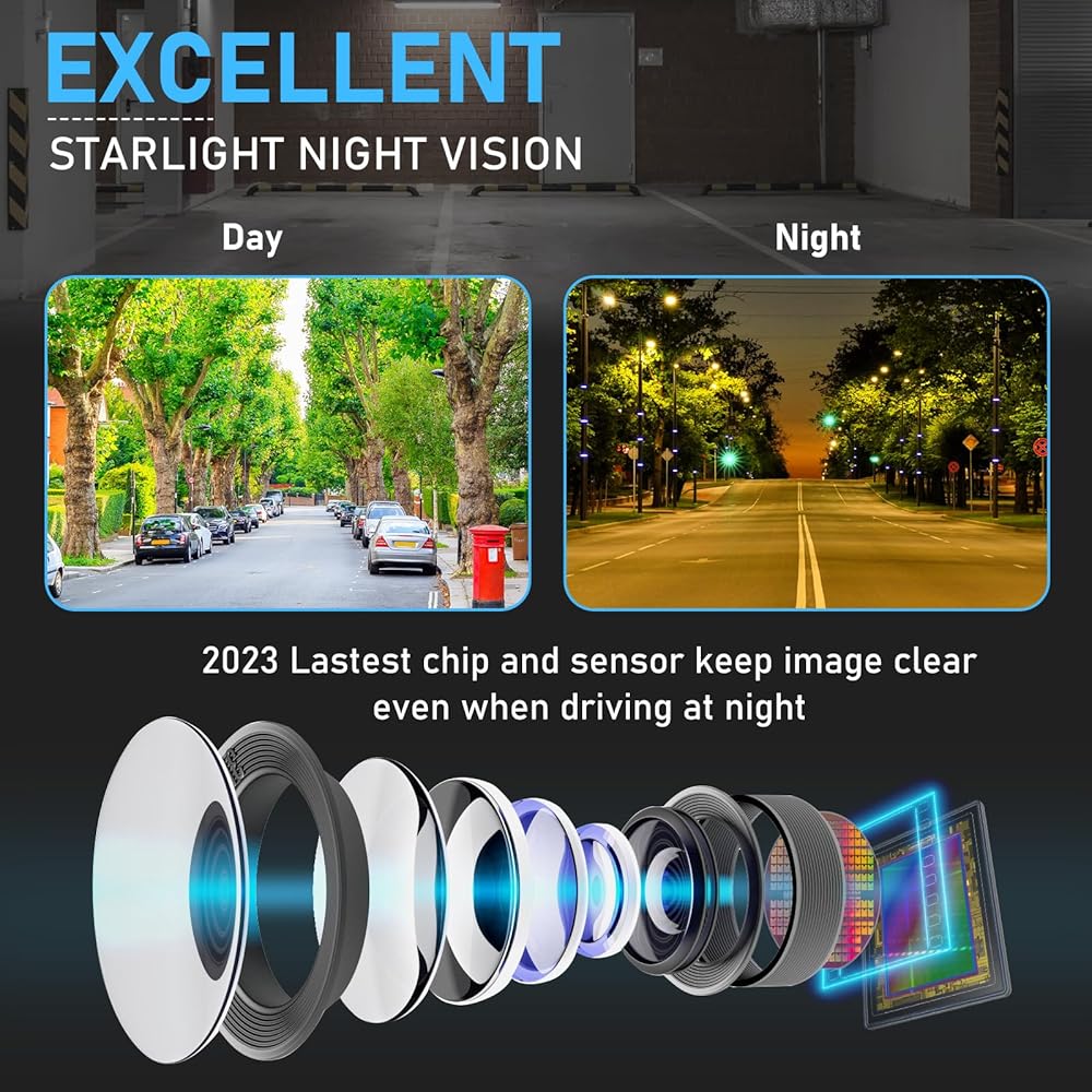 • صورة كريستالية ورؤية ليلية: 6 عدسات زجاجية، إعادة إنتاج ألوان حقيقية بنسبة 100%، أحدث شريحة مطورة، تنتج فيديو واضح في الوقت الحقيقي، رؤية ليلية على مستوى ضوء النجوم تجعل عكس سيارتك أكثر أمانًا في الليل الداكن، والنهار الممطر، ويوم الثلج.