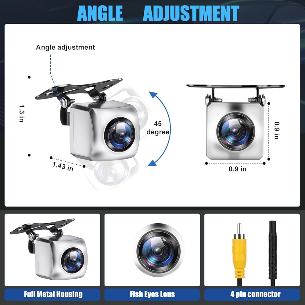 • لأعلى وأسفل 45 درجة: يمكن ضبط الكاميرا الاحتياطية بزاوية لأعلى وأسفل 45 درجة، ويمكنك ضبط مسافة الرؤية العكسية وفقًا لاحتياجاتك. إذا كان قريبًا جدًا من الأرض، يمكنك ضبط الزاوية لأعلى، وإلا يمكنك ضبط الزاوية لأسفل. بعد الانتهاء، لا تنسى إصلاحه.