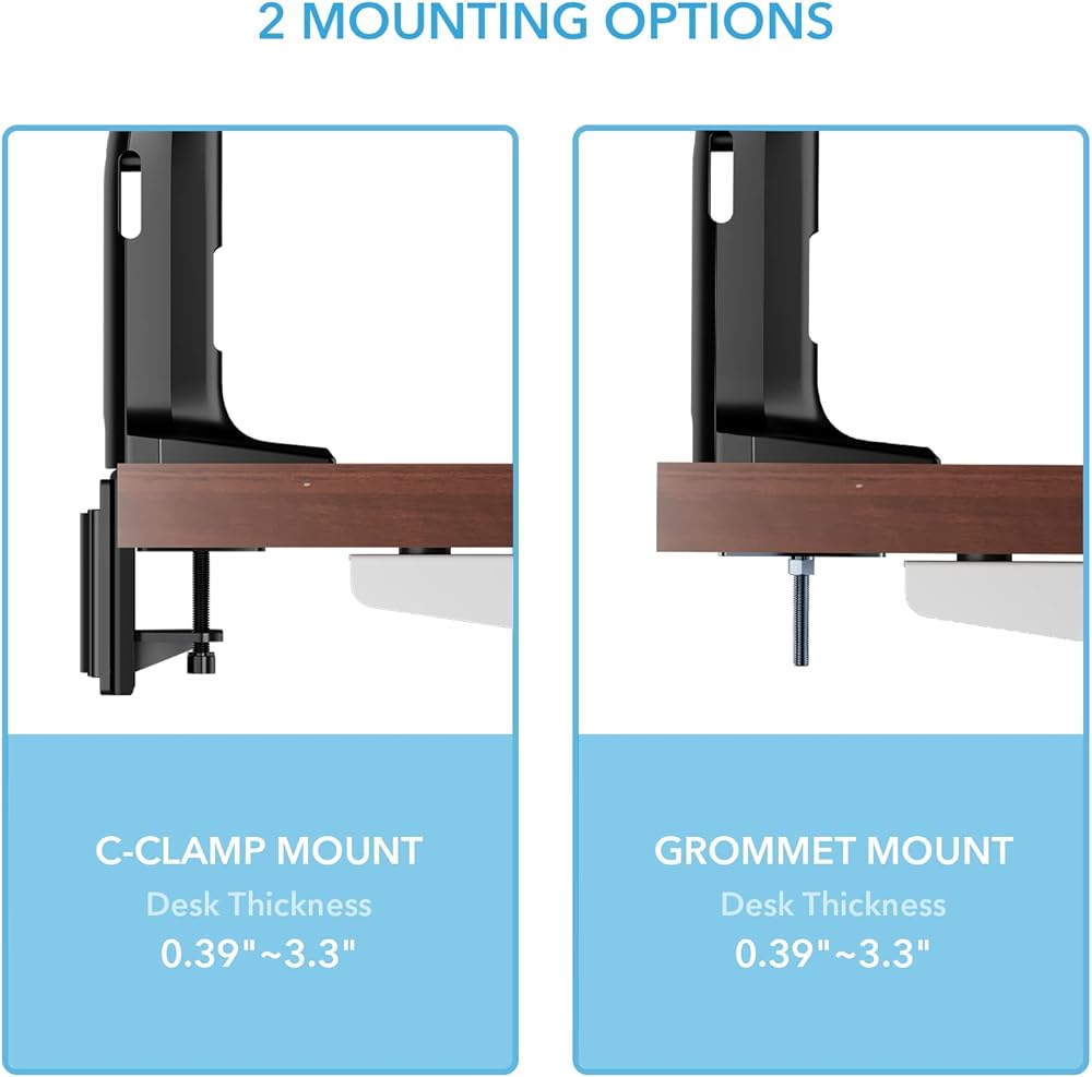 • خياران للتركيب: يمكن تركيب حامل الشاشة المكتبي بمشبك "C" شديد التحمل أو حامل جروميت. سُمك سطح المكتب المقترح: 0.4 انش ~ 3.3 انش.