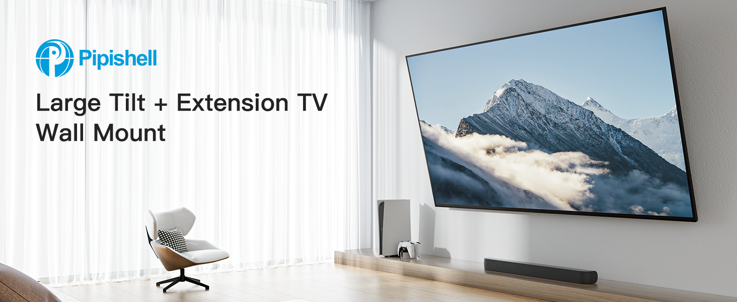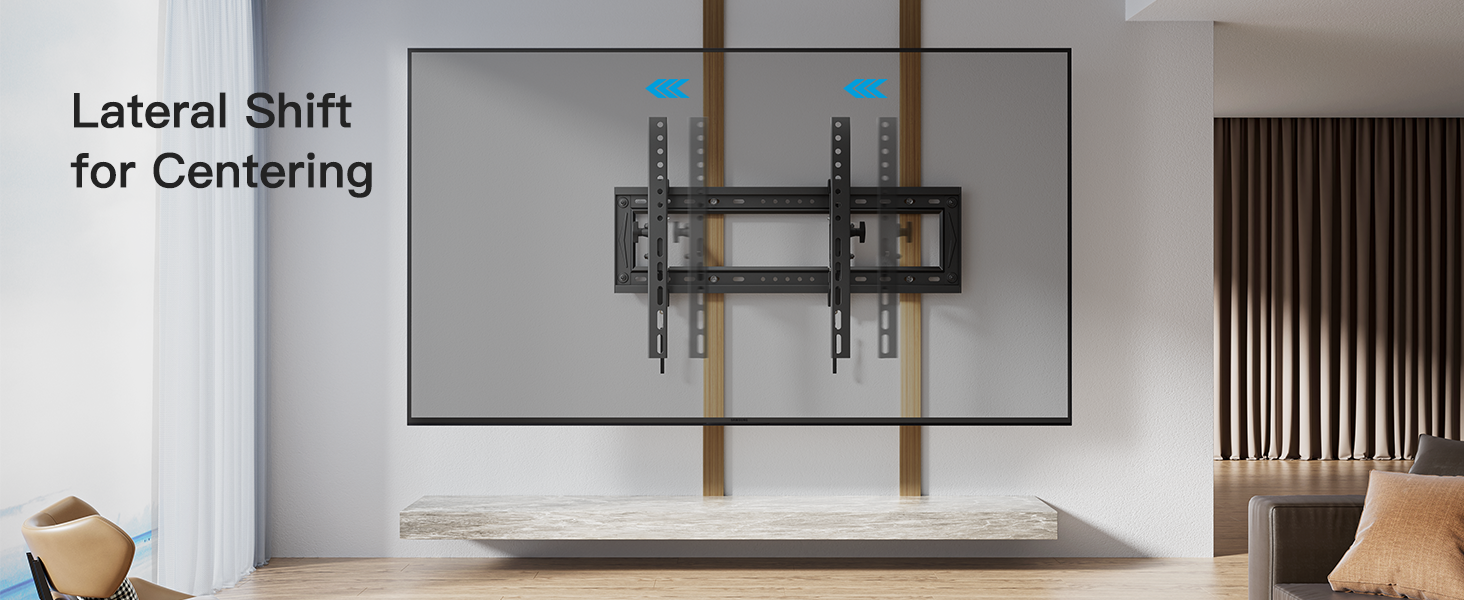 Full -8° Tilt Range: The large TV wall mount features -8° tilt range to direct the screen toward your position. Even if you own a large 90” TV, the innovative design provides enough flexibility for full downward tilt.
