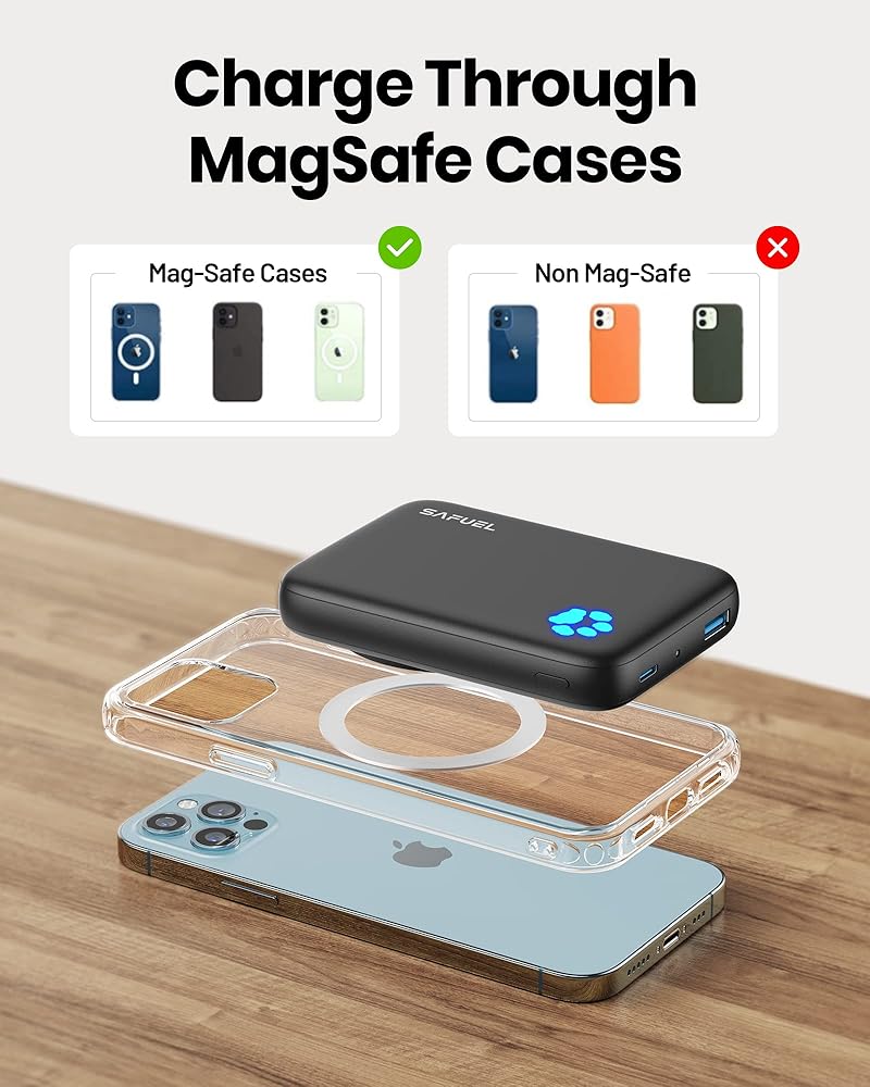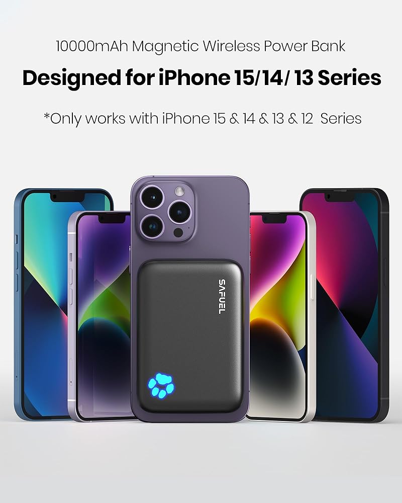 شاحن محمول مغناطيسي من SAFUEL، بنك طاقة مغناطيسي لاسلكي بقدرة 10000 مللي أمبير في الساعة، بنك بطارية شحن سريع 20 وات PD QC3.0، حزمة بطارية USB C داخل وخارج لهاتف iPhone 14 13 12 Pro Max Mini Plus وحقيبة مغناطيسية