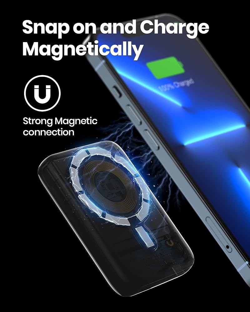 • ✅[طاقة إضافية مرتين] تضيف السعة الكبيرة 10,000 مللي أمبير في الساعة قوة إضافية 2X إلى جهاز iPhone الخاص بك، مما يوفر شحنًا لاسلكيًا لجهاز iPhone 13 1.6 لمدة 40 ساعة من تشغيل الفيديو، بينما تستنزف البطاريات الأخرى بسعة 5000 مللي أمبير في الساعة بسرعة وتفشل في توفير الشحن الكامل.