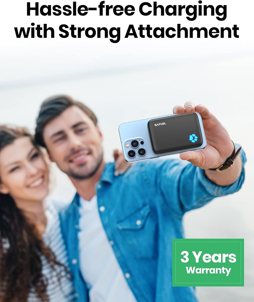 • ✅【ما تحصل عليه】شاحن محمول لاسلكي مغناطيسي SAFUEL بقدرة 10500 مللي أمبير في الساعة *1، كابل USB C *1، حقيبة سفر *1، دليل المستخدم *1، ضمان استرداد الأموال لمدة 30 يومًا، ضمان SAFUEL الرائد في الصناعة لمدة 3 سنوات ودعم فني مدى الحياة.