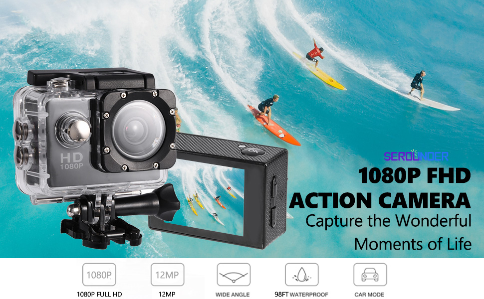 • 【أداء مقاوم للماء حتى 30 مترًا】- مقاوم للماء حتى 30 مترًا/98 قدمًا تحت الماء. يسمح لك الغلاف المقاوم للماء بتصوير الرياضات المائية الرائعة باستخدام هذه الكاميرا تحت الماء.