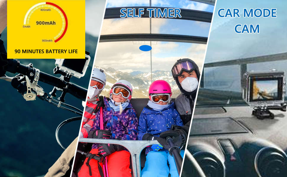 • 【الملحقات】- هذا المنتج مزود بدعامة دراجة وإكسسوارات أخرى، سهل التركيب والتشغيل، يمكنك الفيديو عند ركوب الدراجات وركوب الأمواج وتسجيل كل لحظة رائعة في حياتك.