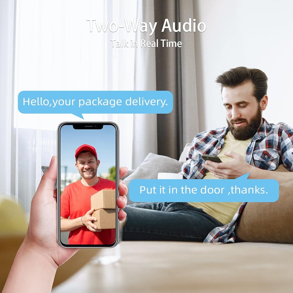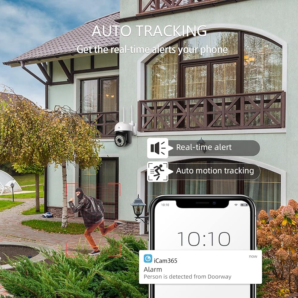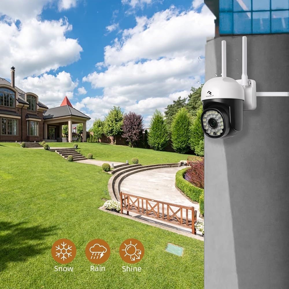 • [صوت ثنائي الاتجاه ومقاوم للطقس IP65]: تحتوي كاميرات الأمان المنزلية على ميكروفونات ومكبرات صوت مدمجة لإجراء محادثة بينك وبين زوارك. إذا كان هناك شخص غير مرحب به، يمكنك السماح له بالمغادرة. التحدث في الوقت الحقيقي، ويعيش حياة مريحة. يمكن لكاميرا PTZ بزاوية 360 درجة أن تتحمل الطقس السيئ وتتمتع بأداء جيد في العمل في الهواء الطلق.