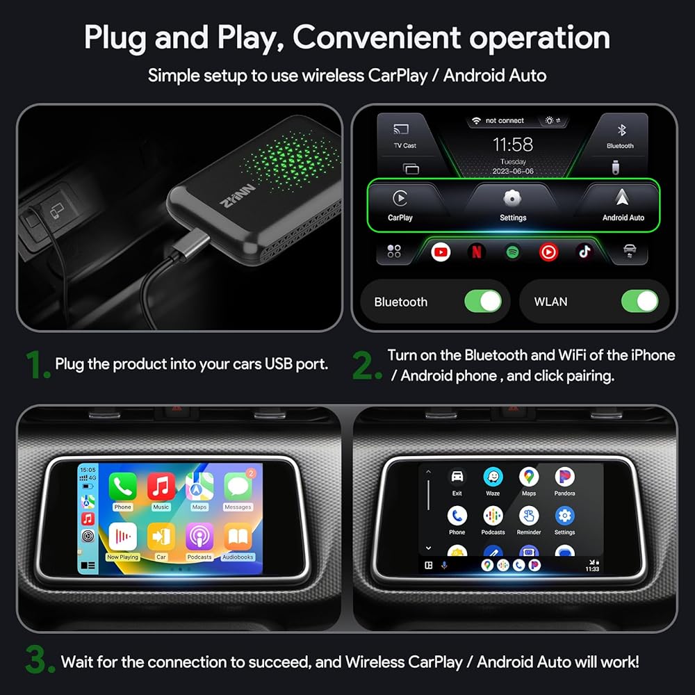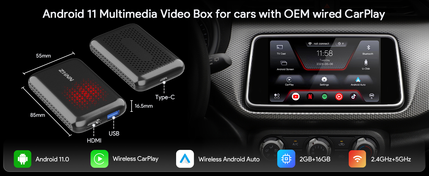 【صندوق سحري لنظام أندرويد للسيارات المزودة بسلك Carplay】يعمل محول ZHNN netflix carplay مع السيارات فقط التي تحتوي على Carplay السلكي من OEM. صندوق carplay للسيارة متوافق مع هاتف Android الذي يعمل بنظام Android 10.0 وما فوق. إذا لم تكن متأكدًا مما إذا كان متوافقًا مع سيارتك أم لا، فيرجى الاتصال بنا لإبلاغنا بالعلامة التجارية لسيارتك وعامها، وسوف نقوم بالرد في أقرب وقت ممكن. 【ملاحظة】غير متوافق مع أي من سيارات BMW.