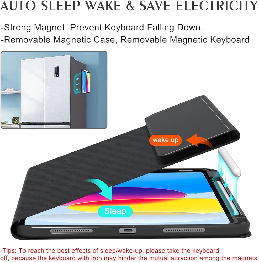👍 توافق الحافظة - تتوافق حافظة لوحة المفاتيح مع iPad 10th 10.9" 2022 (غير مناسبة لجهاز 10.9 Air 5/4)، بما في ذلك الطراز رقم A2757/A2777/A2696. يمكن طي لوحة مفاتيح الحافظة مثل الكتاب وفتحها مثل الكمبيوتر الصغير ، سهل الحمل، وهو مثالي للعمل وتدوين الملاحظات والكتابة في المكتب أو المدرسة أو أثناء السفر.♐ يرجى التحقق من الجزء الخلفي من أجهزتك قبل الشراء (لا يوجد قلم متضمن)
