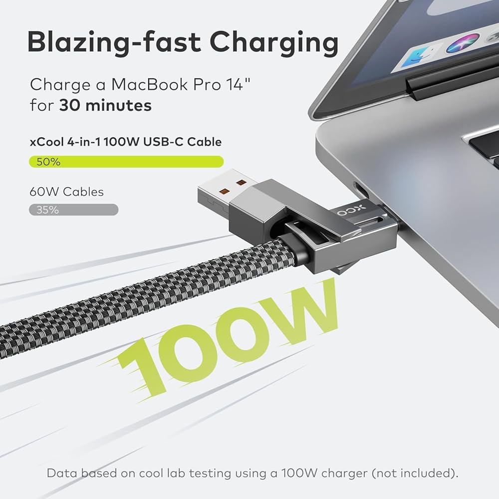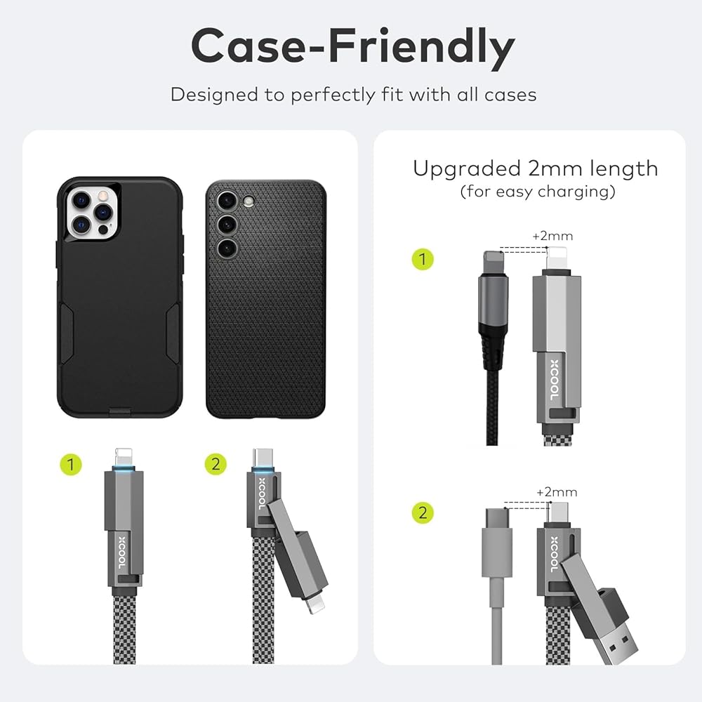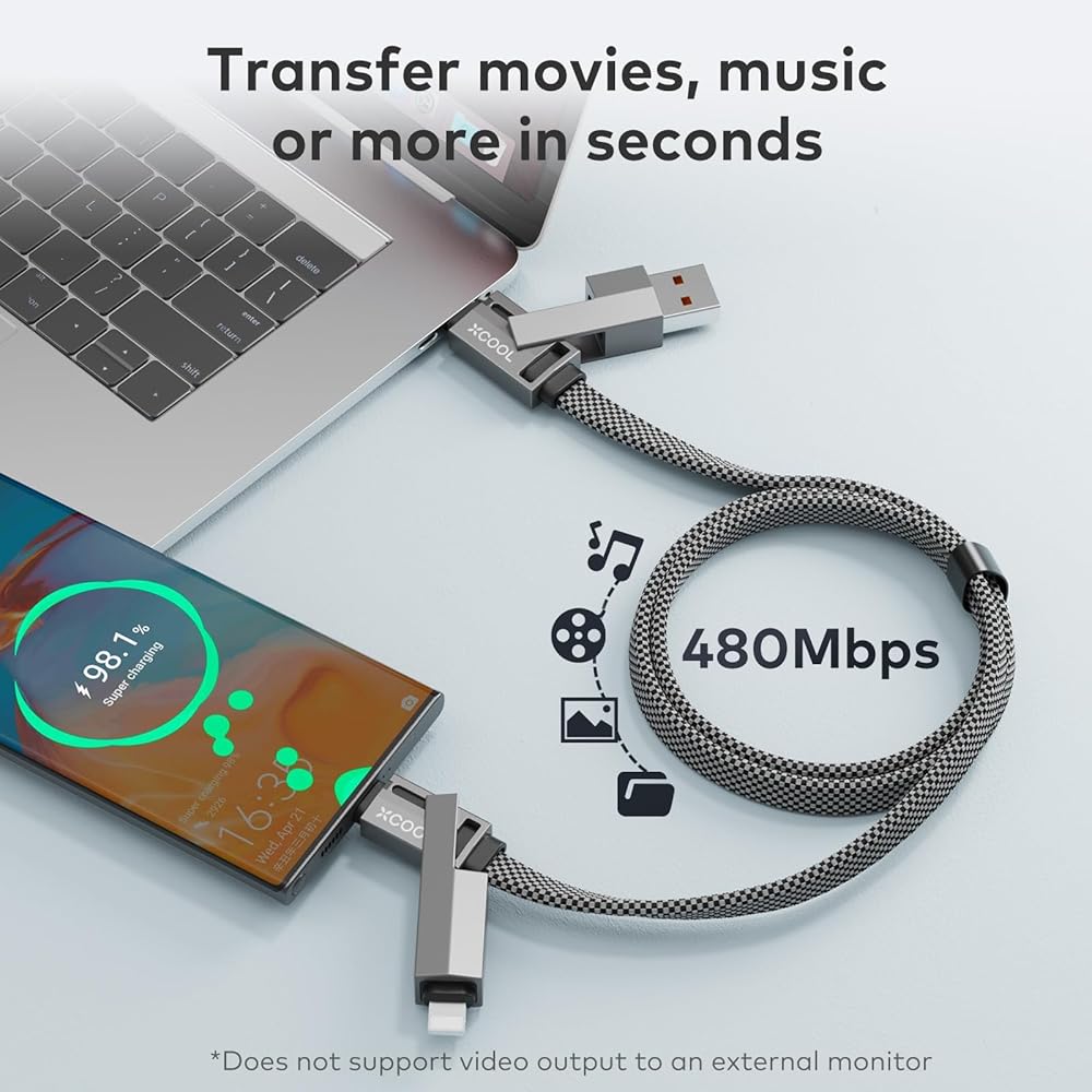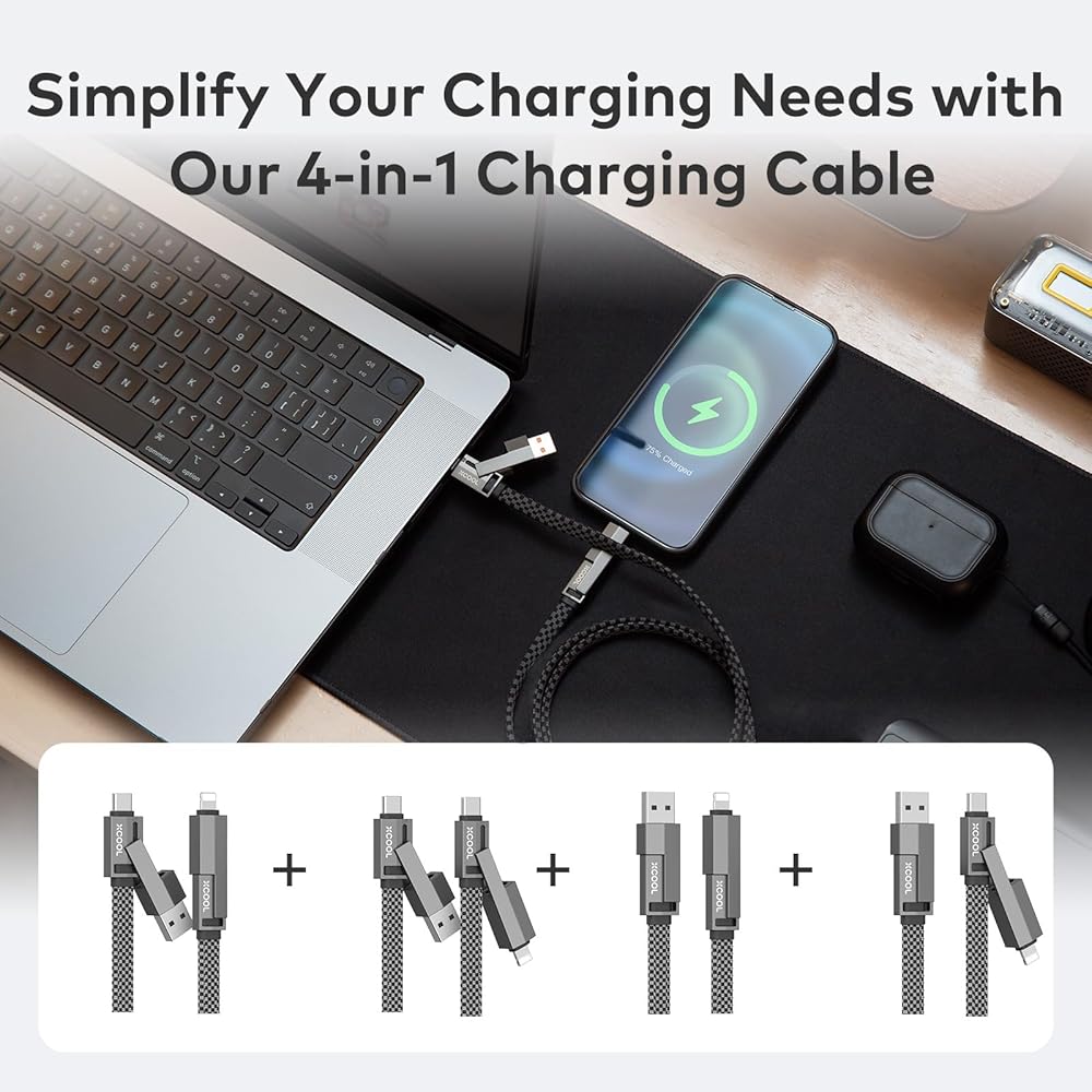 • تصميم متعدد الاستخدامات 4 في 1: قم بتبسيط إعداد الشحن الخاص بك باستخدام كابل USB-C متعدد الاستخدامات 4 في 1. قم بشحن ومزامنة أجهزتك دون الحاجة إلى التبديل بين الكابلات المتعددة.