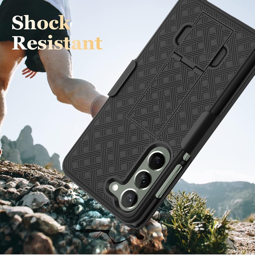 جراب فينغيك لهاتف سامسونج جالاكسي S23 جراب كومبو نحيف ومتين مع مسند مدمج ومشبك حزام دوار جراب مضاد للصدمات