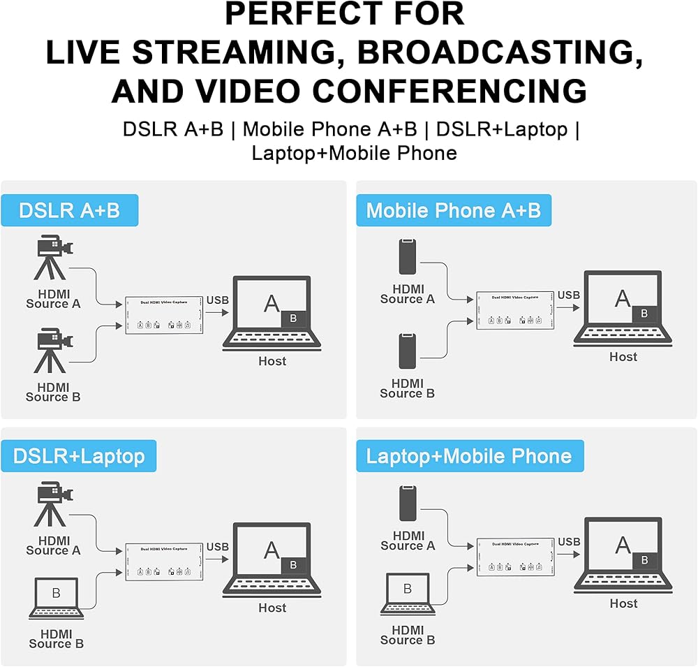 - مدخل HDMI مزدوج لالتقاط قناتين