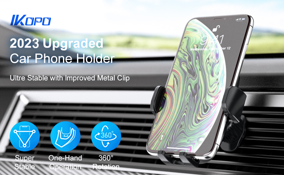 حامل هاتف السيارة IKOPO، حامل فتحة تهوية عالمية، مشبك أقوى مضاد للصدمات، حامل للهاتف الخلوي المحمول، حامل حر اليدين لهاتف iPhone، Samsung، LG والمزيد