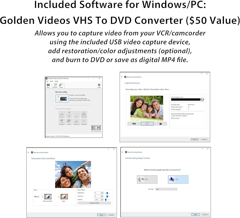 برنامج متضمن للكمبيوتر/النوافذ: محول فيديو NCH Golden Videos VHS إلى DVD