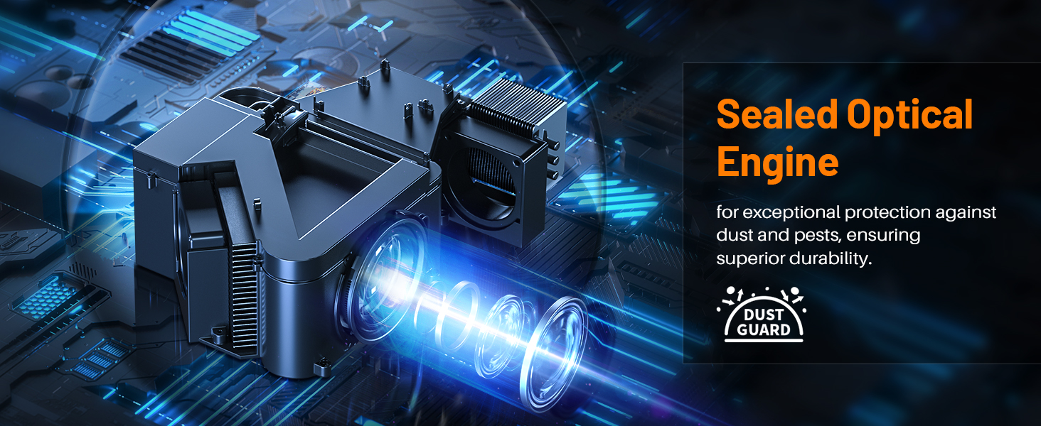 🌟محرك بصري مغلق بالكامل - يضمن هذا التصميم المقاوم للغبار تشغيلًا خاليًا من الغبار، مما يمنع البقع السوداء ويضمن جودة صورة متسقة. تقليل الحاجة إلى الصيانة المتكررة وتوفير الوقت والمتاعب. بالإضافة إلى ذلك، يساعد التصميم المحكم على إطالة عمر جهاز عرض الفيديو، مما يجعله استثمارًا مفيدًا. بفضل المحرك البصري المحكم لجهاز العرض الخارجي، يمكنك الاستمتاع بصورة واضحة ومشرقة وطويلة الأمد دون أي قلق أو متاعب.