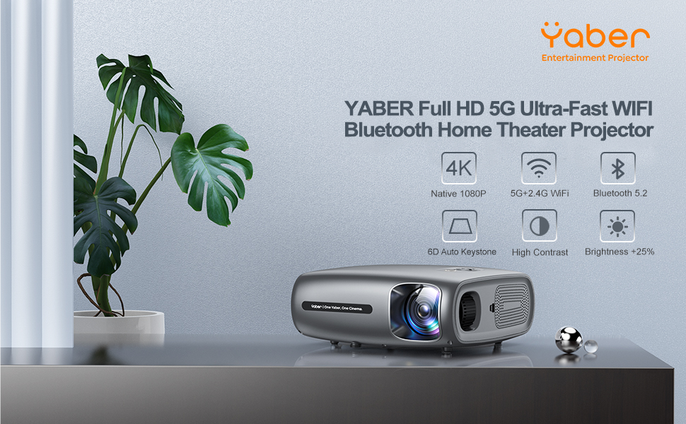 جهاز عرض 4K مع 5G WiFi وBluetooth 5.2، YABER 19000L FHD أصلي 1080P جهاز عرض محمول خارجي دعم 4K، 4P/4D Keystone&Zoom، جهاز عرض أفلام المسرح المنزلي لنظام iOS/Android/PC/TV Stick/HDMI/USB