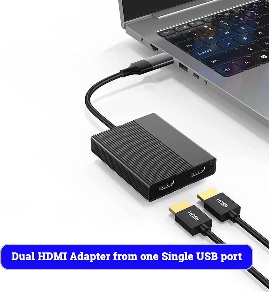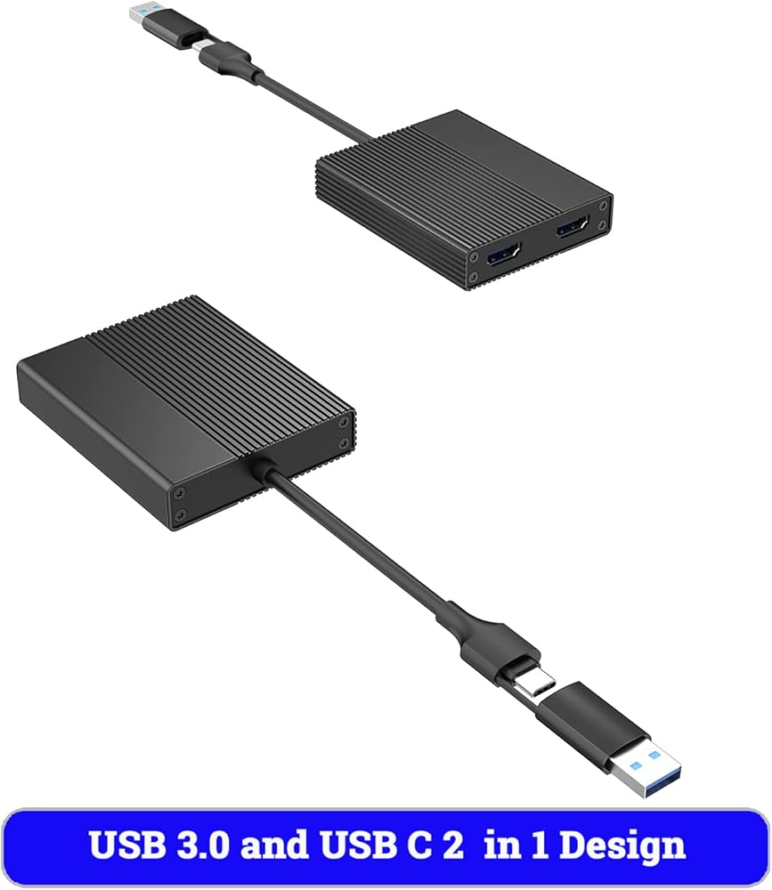 محول HDMI مزدوج 4 كيه عند 60 هرتز هذا المحول USB 3.0 إلى HDMI مجهز بمنفذ HDMI مزدوج، كل منفذ يدعم دقة 4K 60Hz و1080P وغيرها من الدقة المنخفضة.