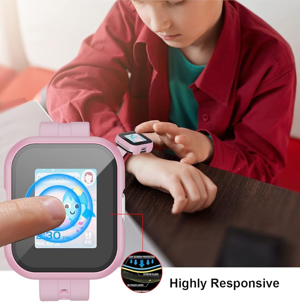 【جودة عالية】غطاء ساعة SyncUP Kids مصنوع من زجاج مقسى عالي الجودة ومواد البولي كربونات المتينة مع حماية طويلة الأمد، ويحمي ساعة SyncUP Kids الذكية من الخدوش اليومية والتأثيرات والسقوط وعلامات التآكل العادية.
